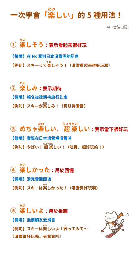 【例句】スキーは楽しいよ!行ってみて〜