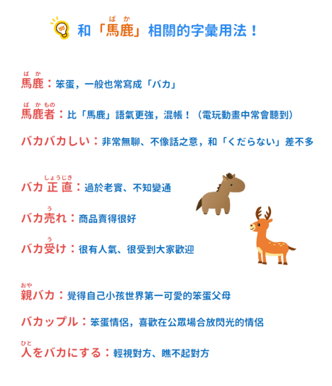 馬鹿者:比「馬鹿」語氣更強,混帳!(電玩動畫中常會聽到)