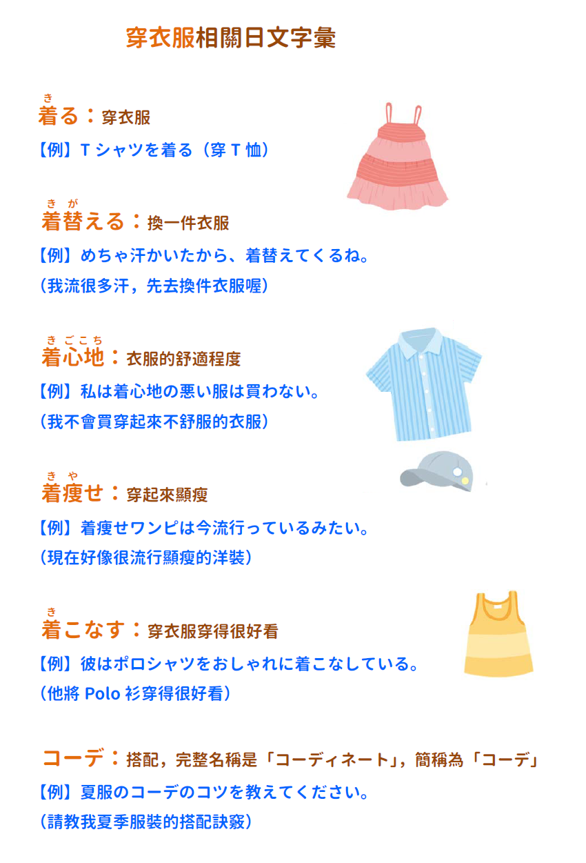 例:夏服のコーデのコツを教えてください。(請教我夏季服裝的搭配訣竅)