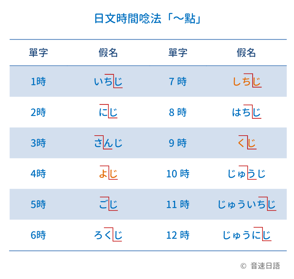 | 1時 | いちじ | 7時 | しちじ |