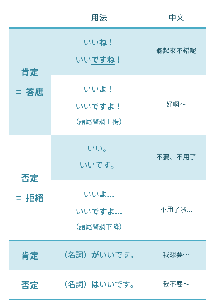 順帶一提,日文的「いい」可以表示完全不同的語氣,