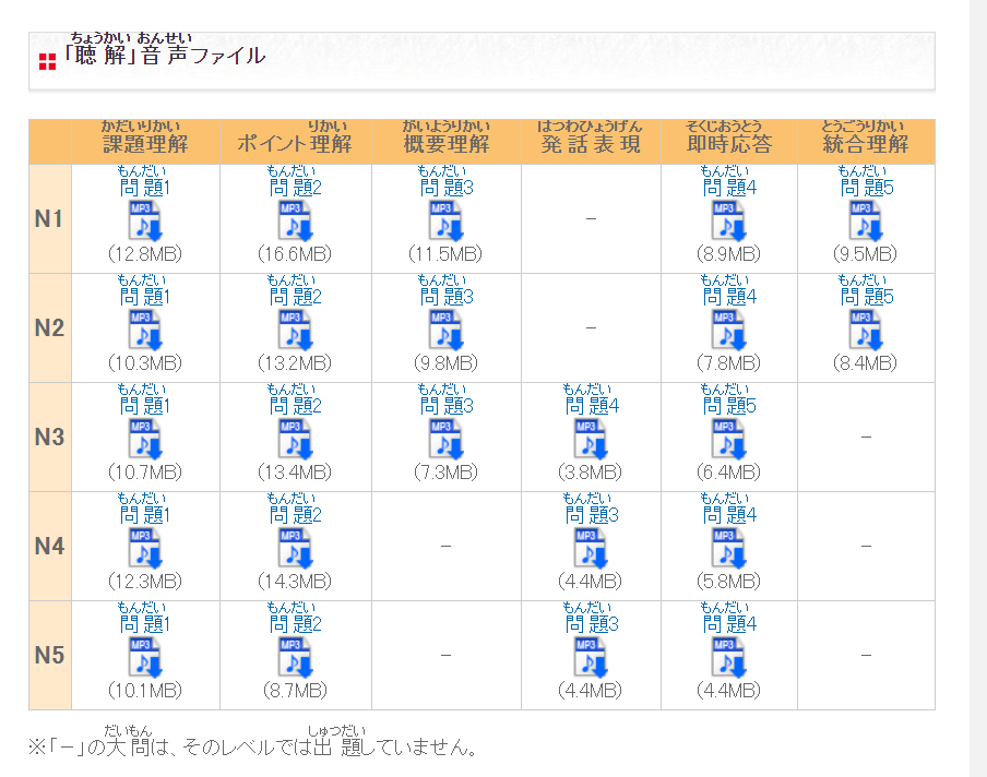 使用下方的「聴解音声ファイル」進行作答,這是聽力測驗的聲音檔,