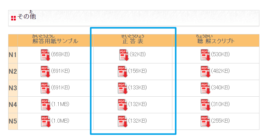 ⭐ 他們在日本官網上,免費提供N1〜N5級數的考古題,