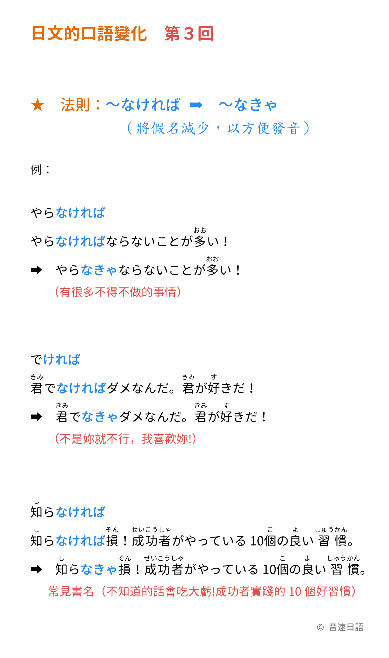 ★ 法則:「なければ」➠「なきゃ」