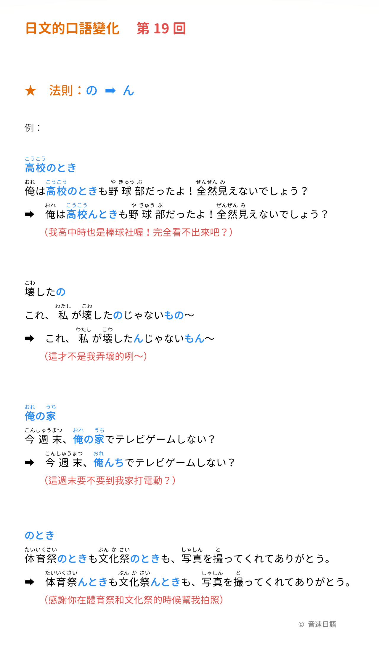 法則:「の」→「ん」