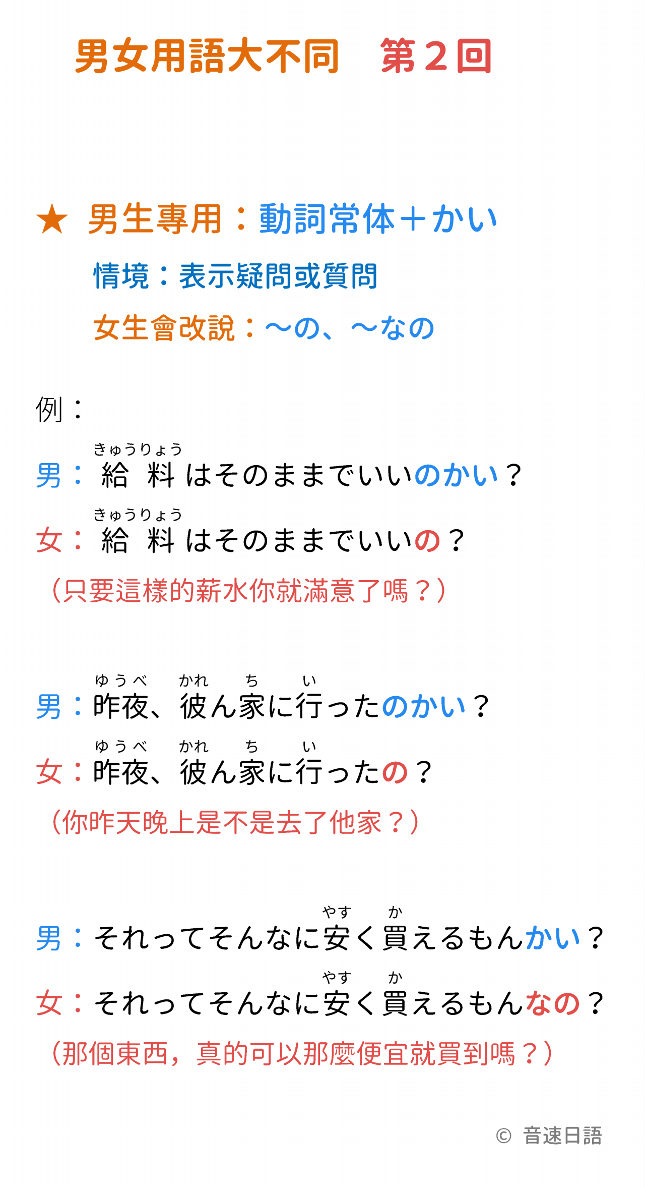 女生會改說:~の、~なの