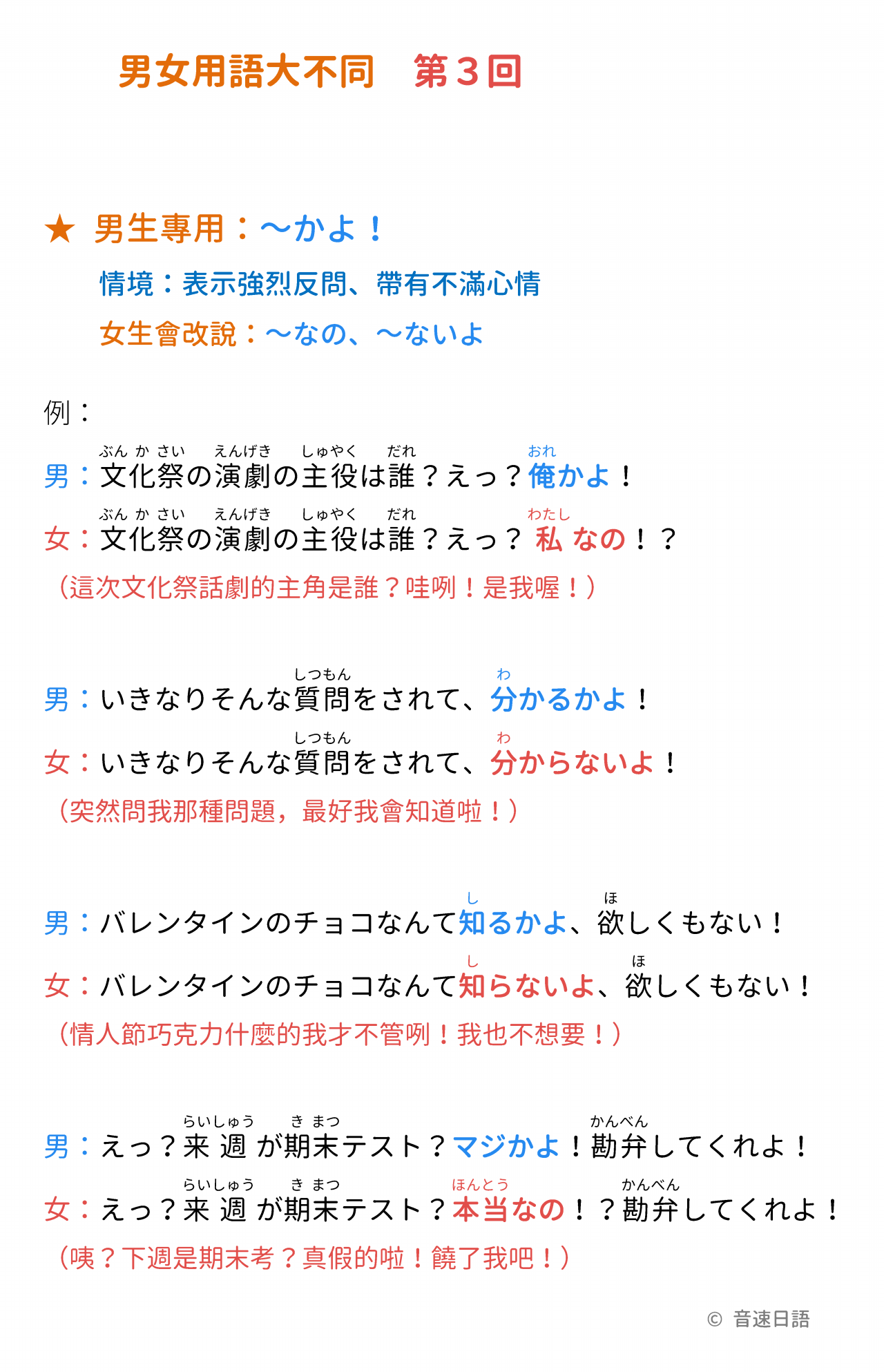 ★ 男生專用:~かよ!
