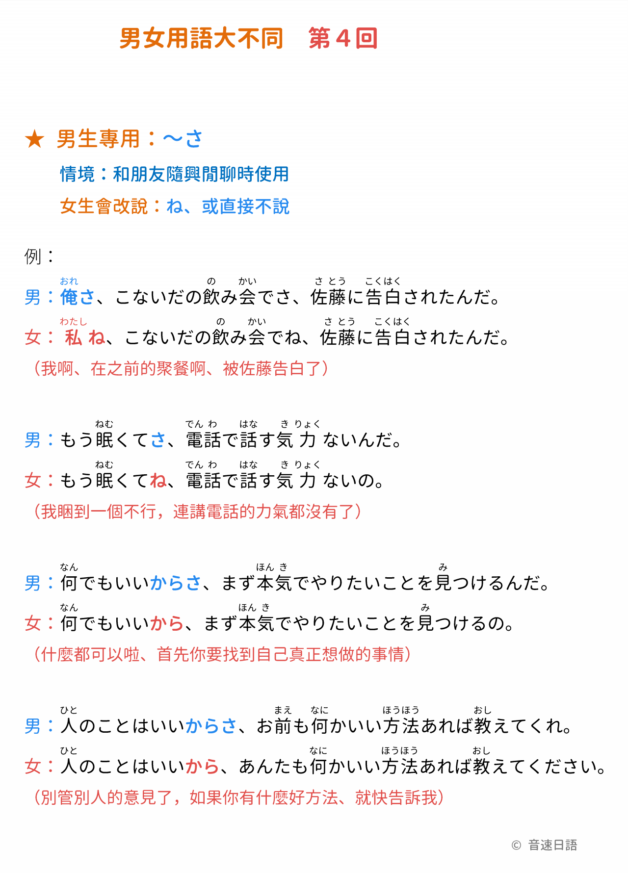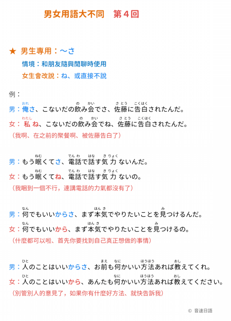 ★ 男生專用:~さ情境:和朋友隨興閒聊時使用