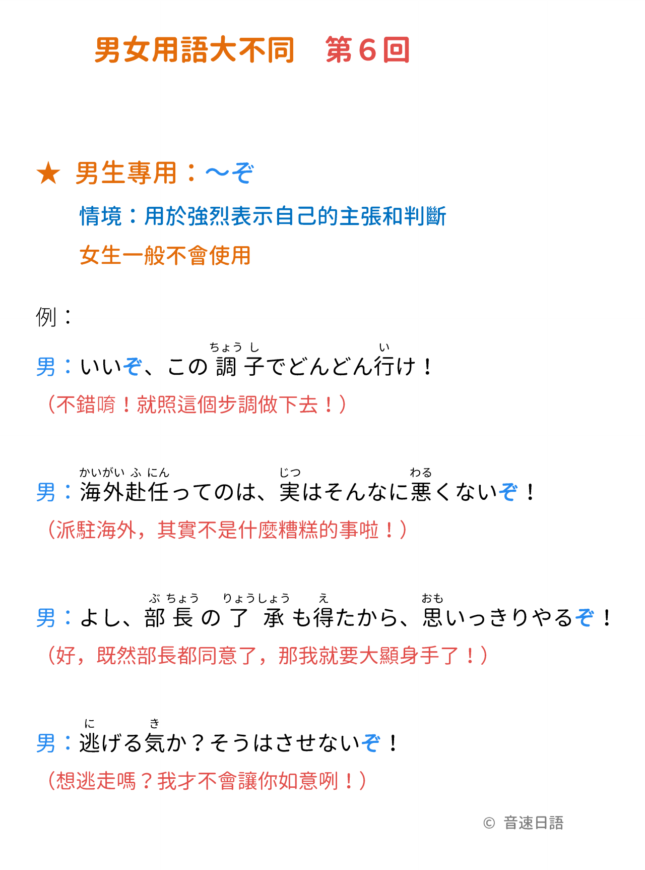★ 男生專用:~ぞ