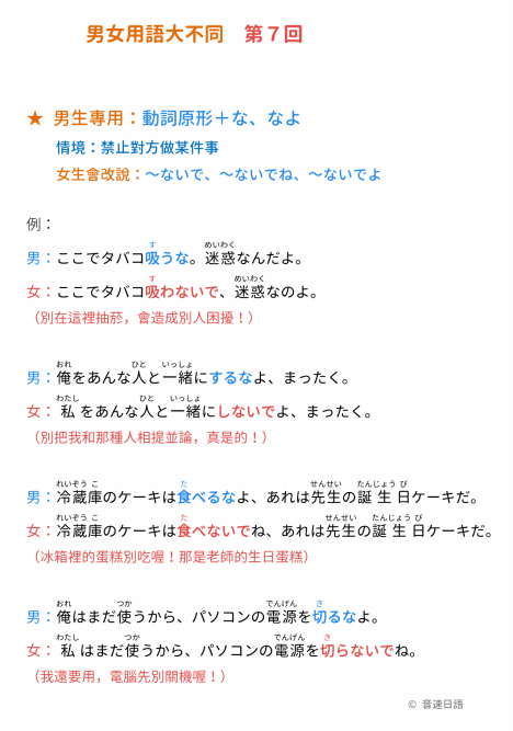 日文當中,男生和女生有時用語和用字遣詞會不太一樣,我們一起來看看吧~