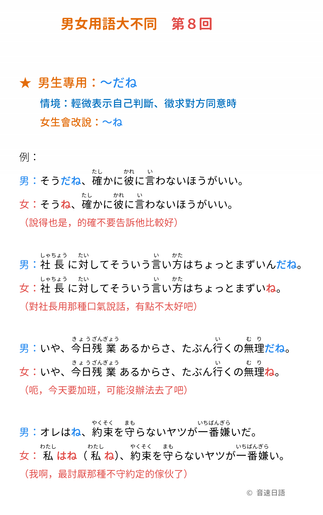 ★ 男生專用:~だね
