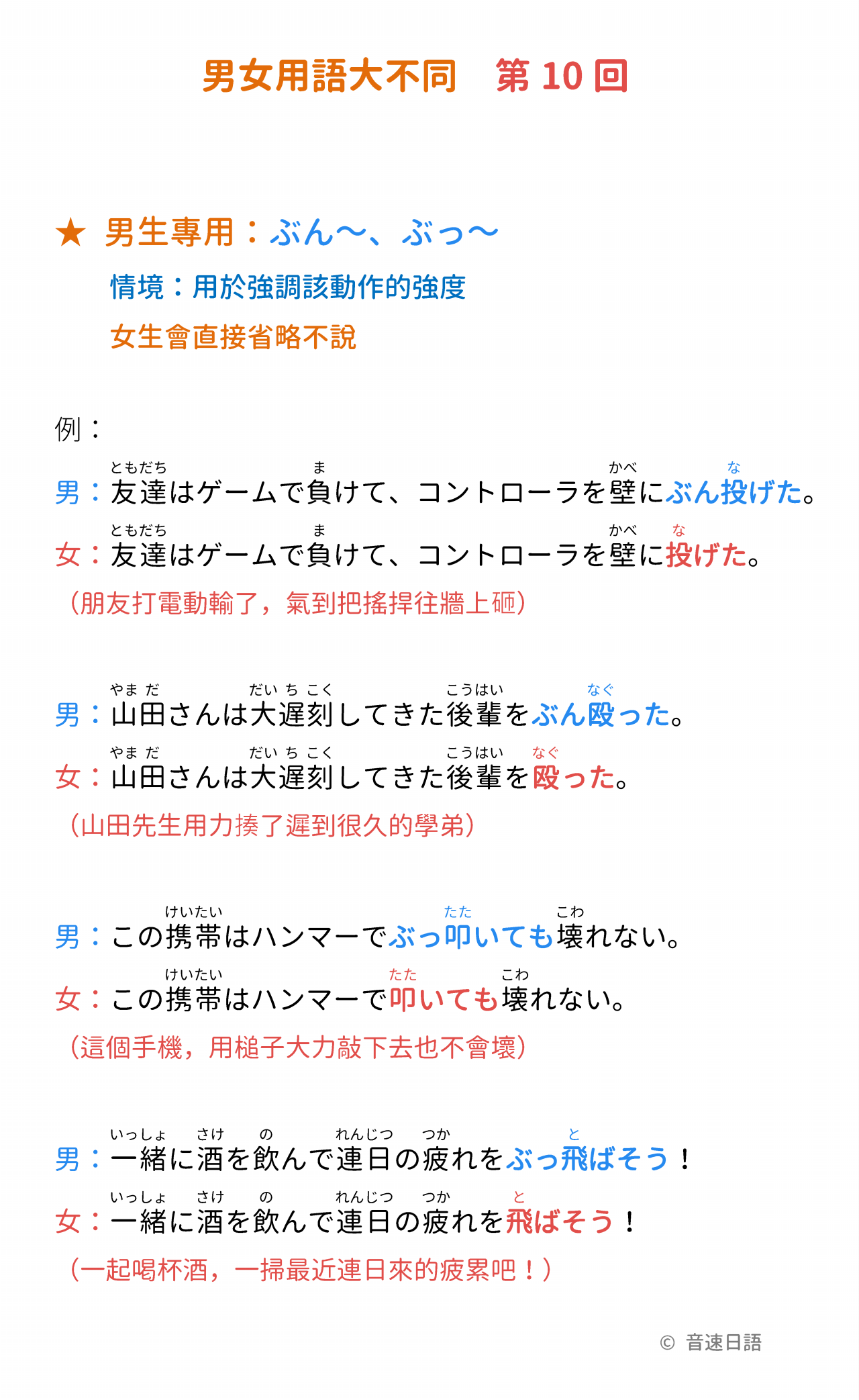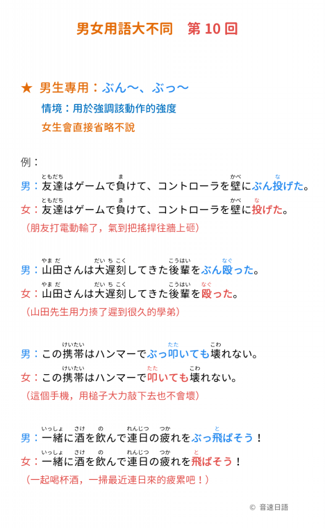 日文當中,男生和女生有時用語和用字遣詞會不太一樣,我們一起來看看吧~