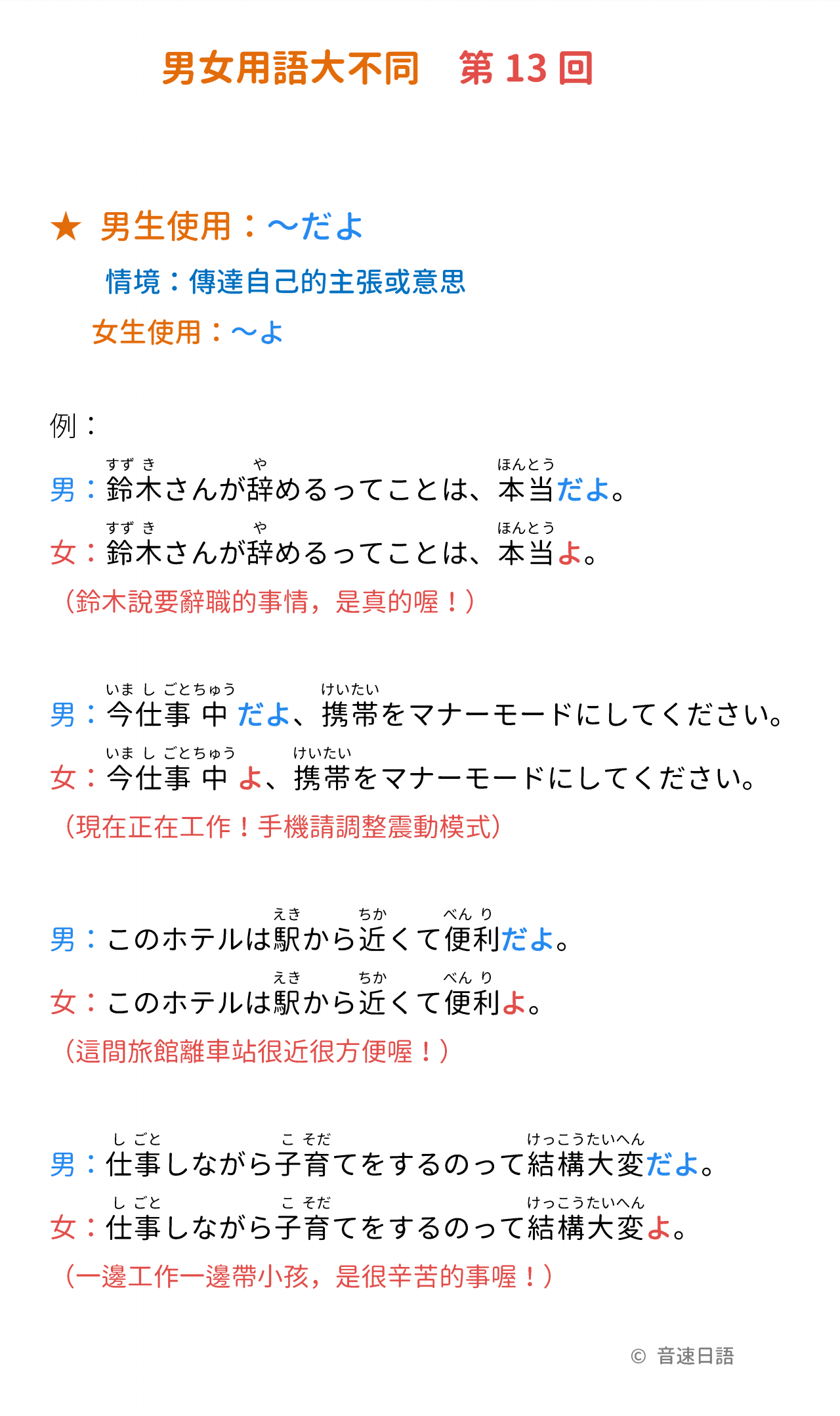 日文當中,男生和女生有時用語和用字遣詞會不太一樣,我們一起來看看吧~
