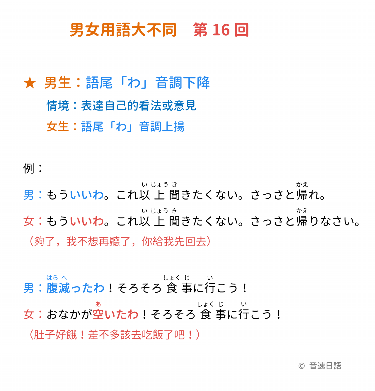 ★ 男生:語尾「わ」音調下降