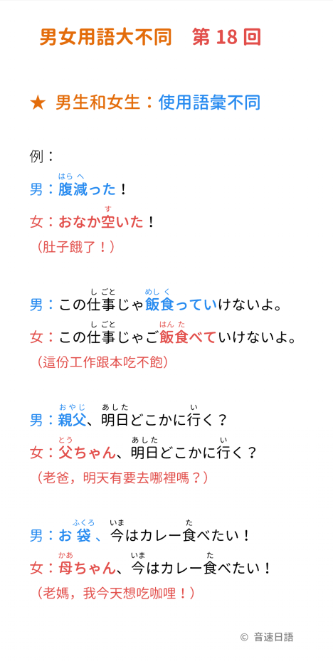 日文當中,男生和女生有時用語和用字遣詞會不太一樣,我們一起來看看吧~