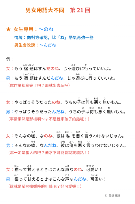 日文當中,男生和女生有時用語和用字遣詞會不太一樣,我們一起來看看吧~