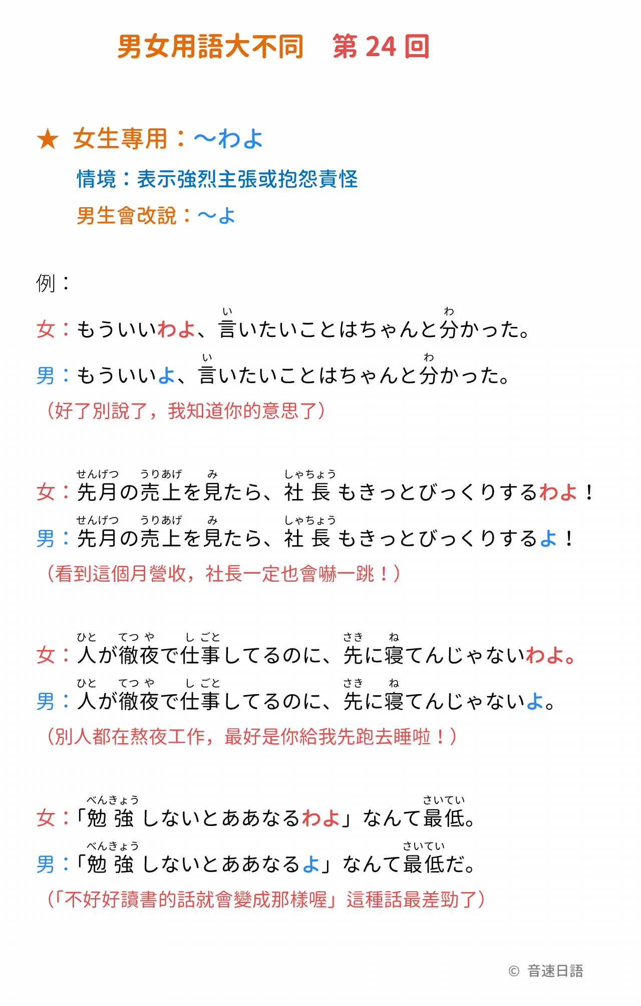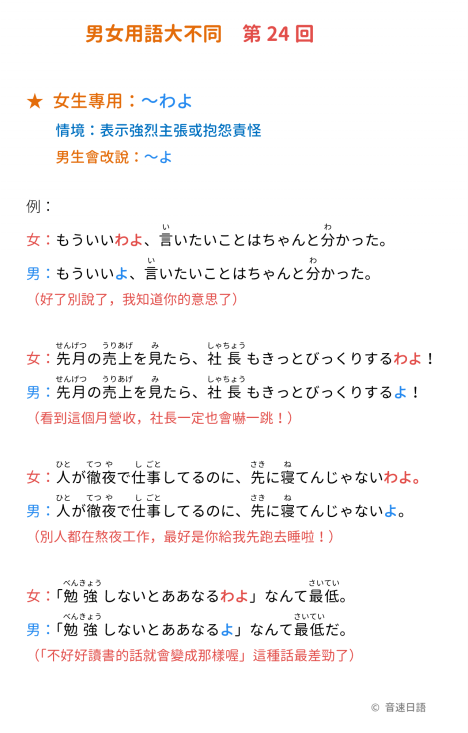 日文當中,男生和女生有時用語和用字遣詞會不太一樣,我們一起來看看吧~
