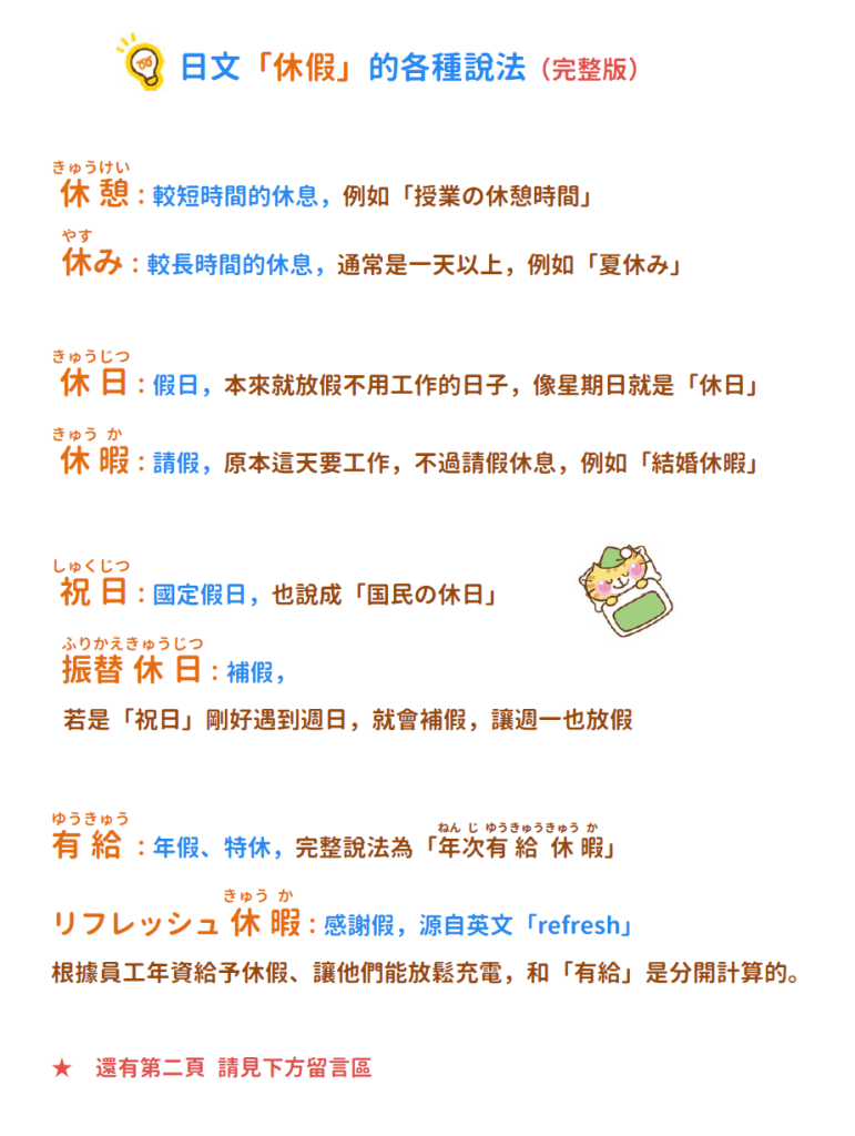 同場加映:日文「休假」的各種說法,請見下圖