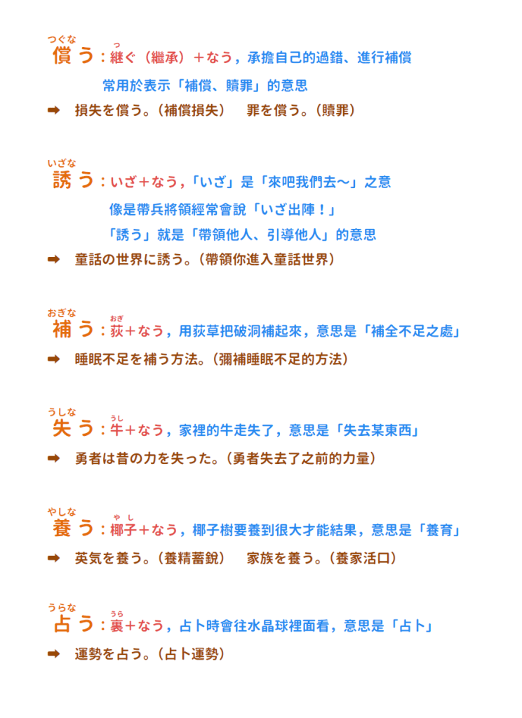 還有「賄う・償う・養う」等等