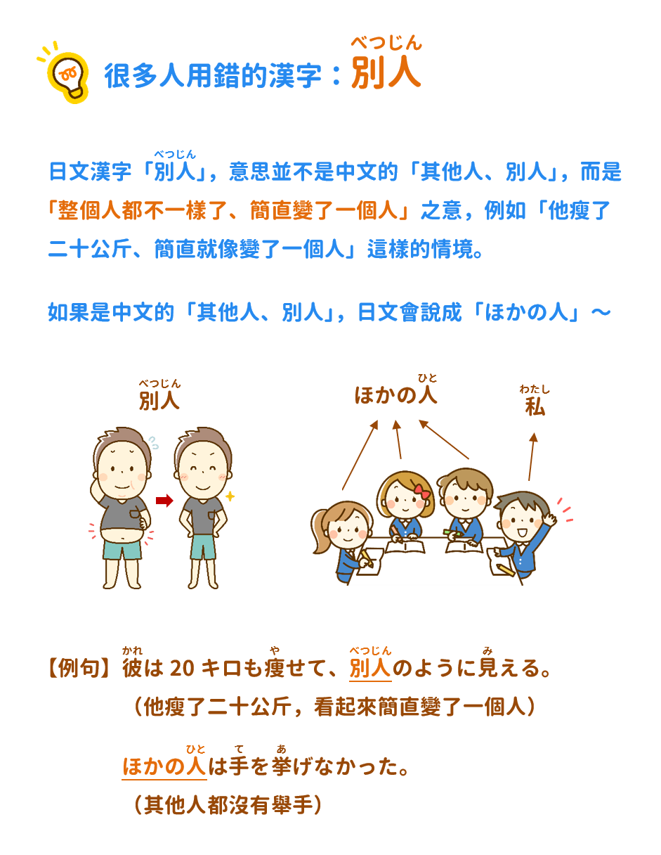 日文漢字「別人」,意思並不是中文的「其他人、別人」,