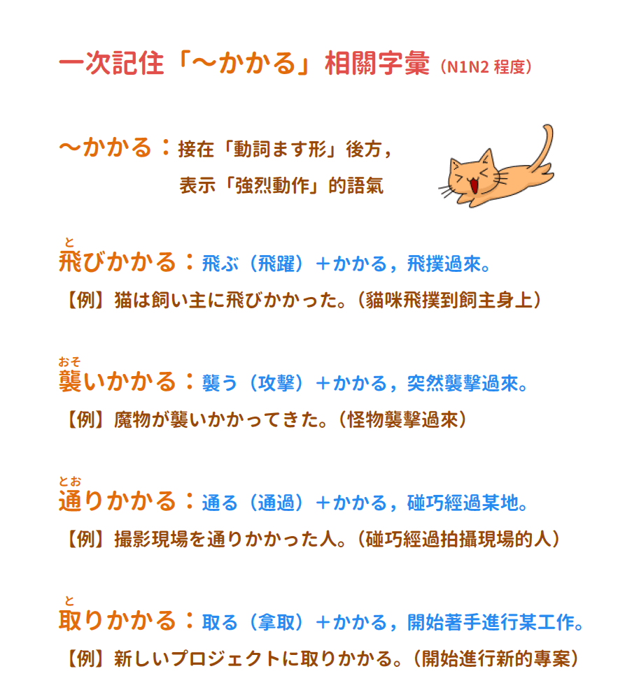 日文動詞「かかる」前面可以接「動詞ます形」,
