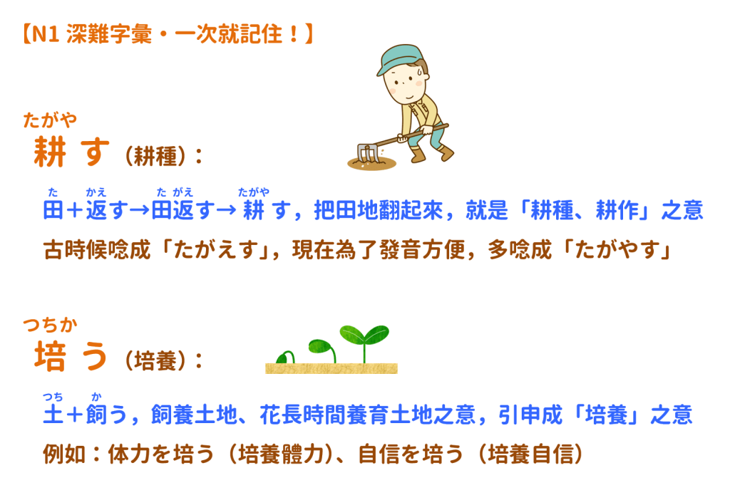 引申為「培養」之意,例如「体力を培う・自身を培う」