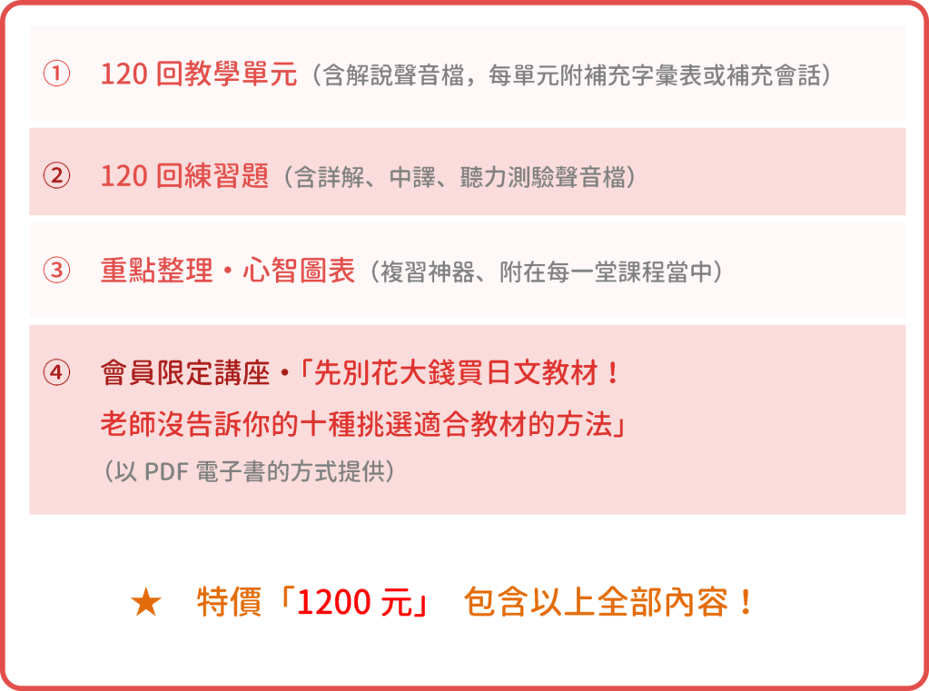 ⭐ 課程試閱:請點選這裡(前往「音速日語線上教室」網站)