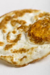 只煎一面的荷包蛋,下面微焦,上面則是白色的