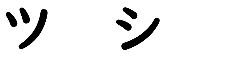 這二個假名,點點的位置不同,「ツ」是左右二點,「シ」則是上下二點