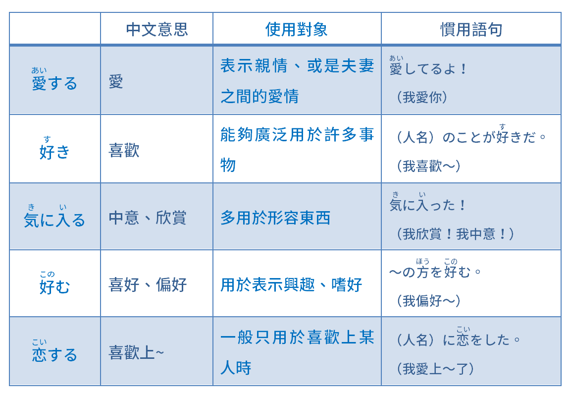 你可能會心想,「好き・愛する」也是喜歡的意思,那有什麼不同呢?