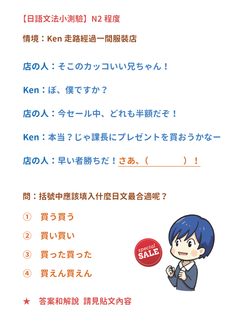 ⭐ 情境當中,Ken路過服裝店,店家剛好在大特價,