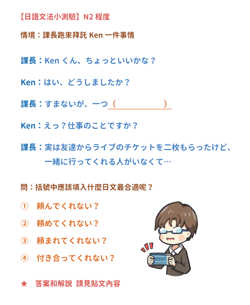 考考你,括號中最適合的日文說法是什麼呢?