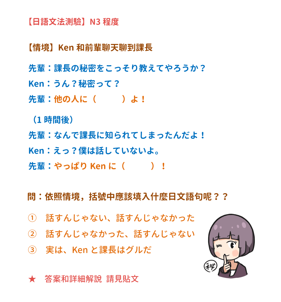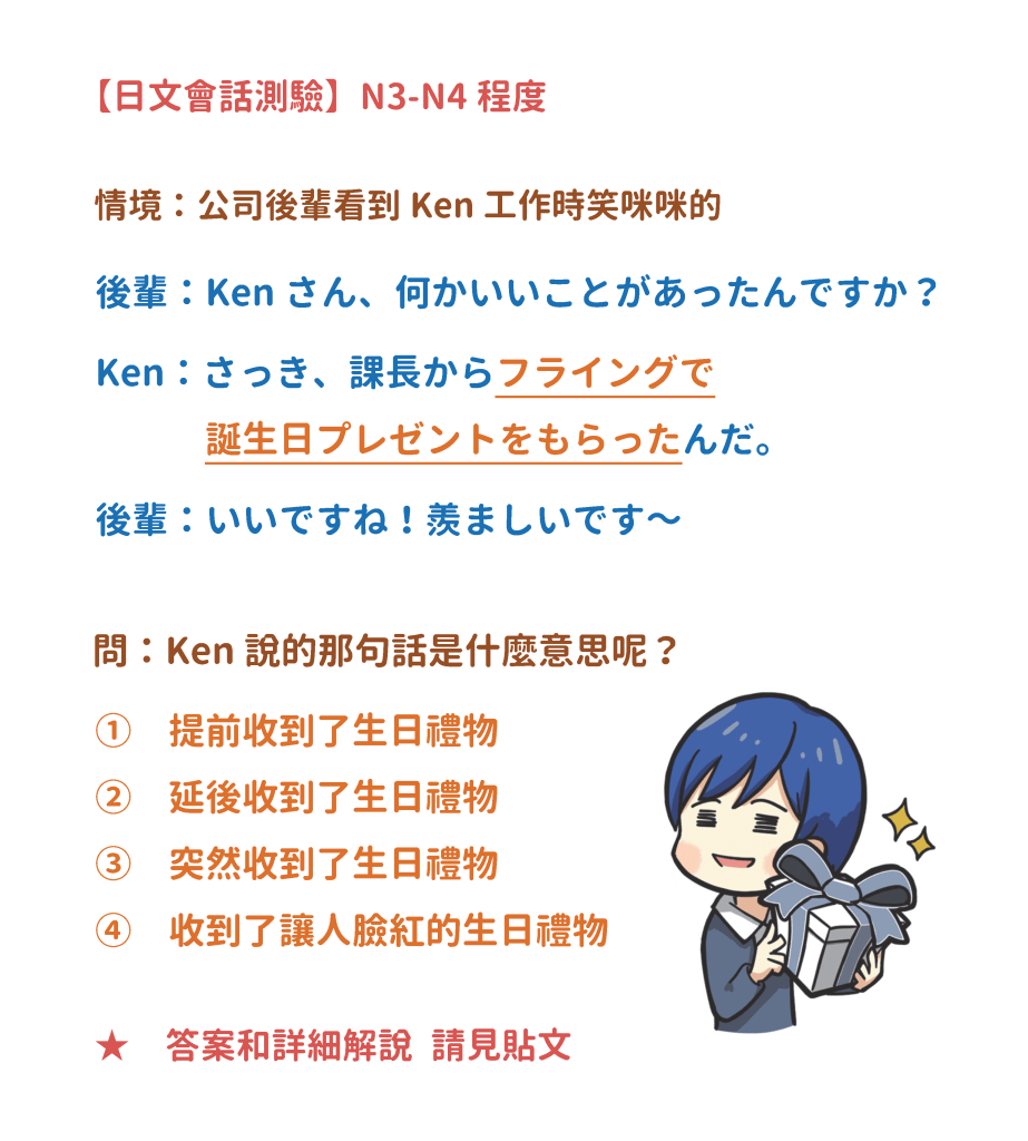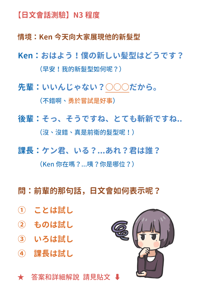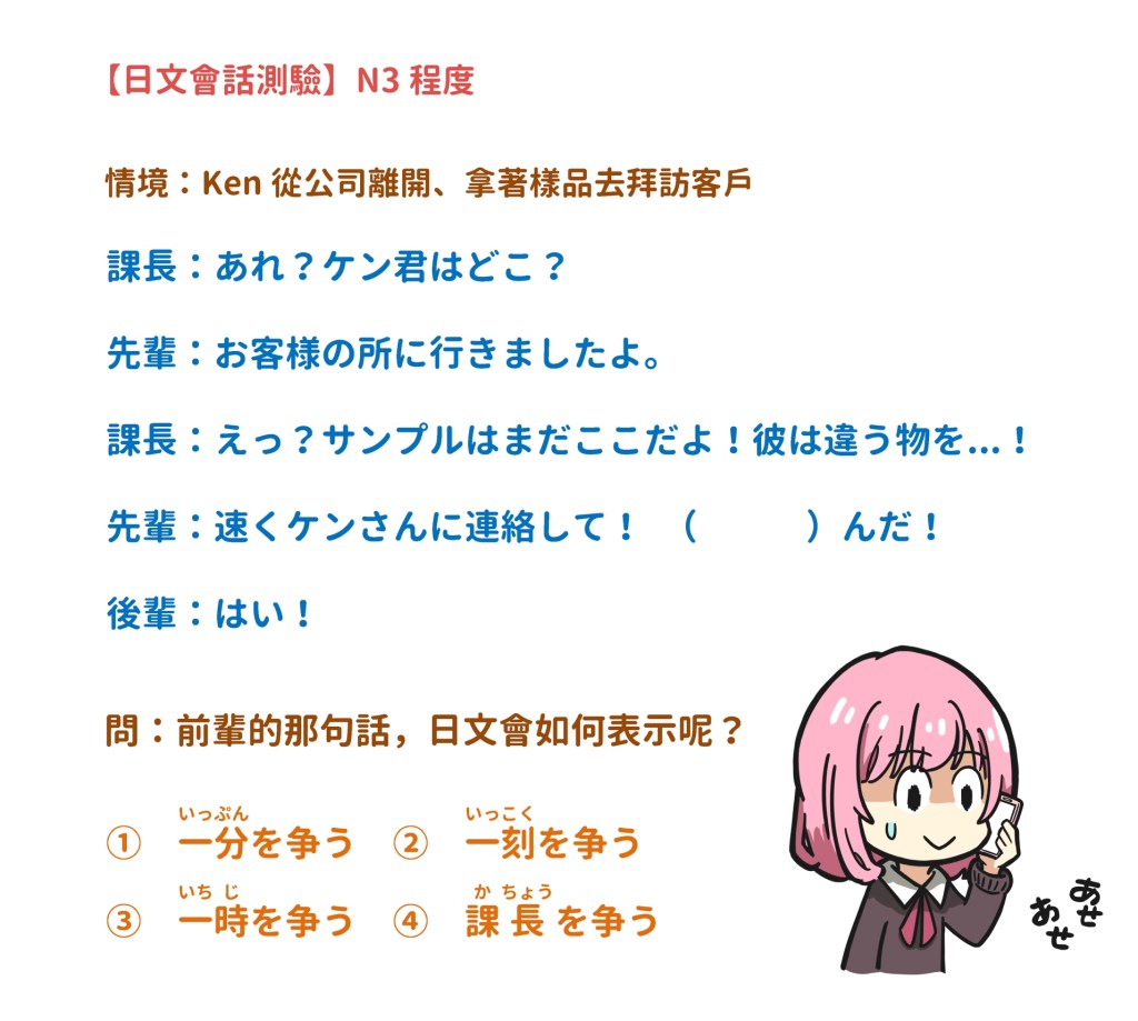 考考大家,課長那句話,日文會如何表示呢?請作答!