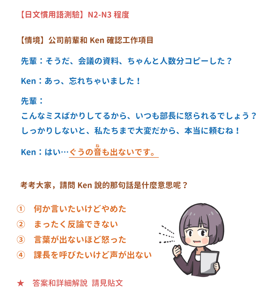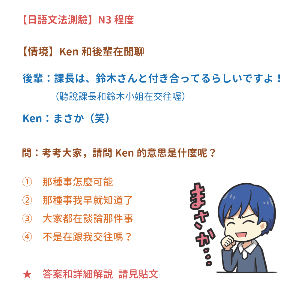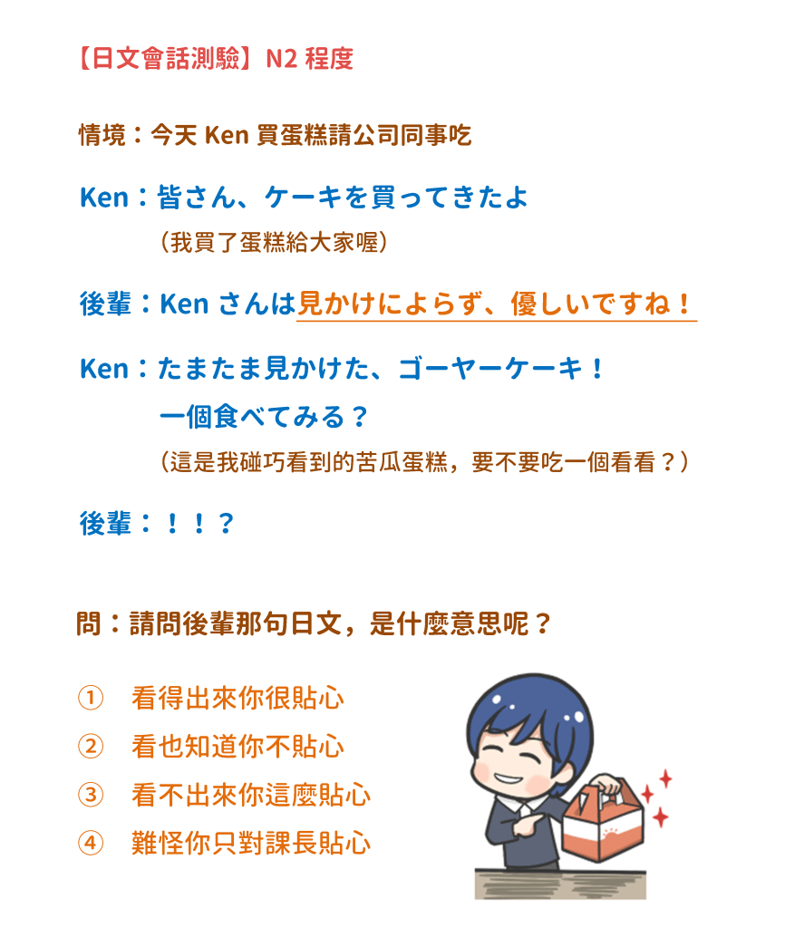 考考大家,課長那句話,日文會如何表示呢?請作答!