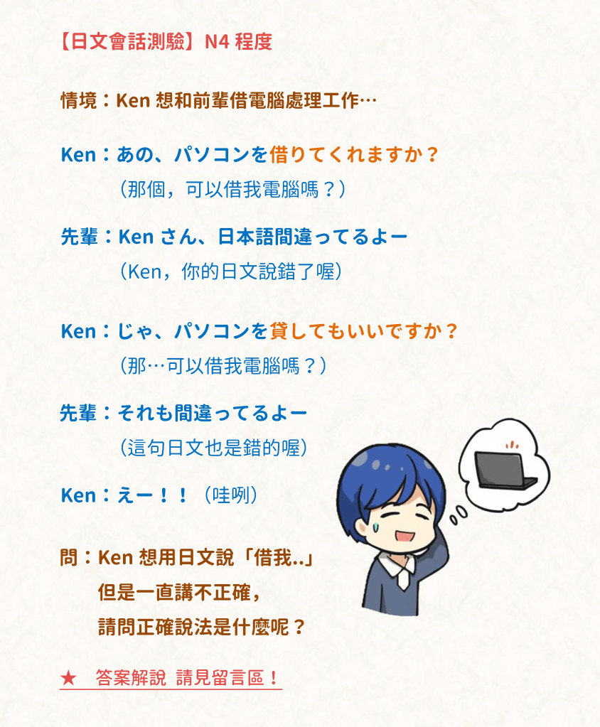 考考大家,請問Ken的那句話,日文會如何表示呢?
