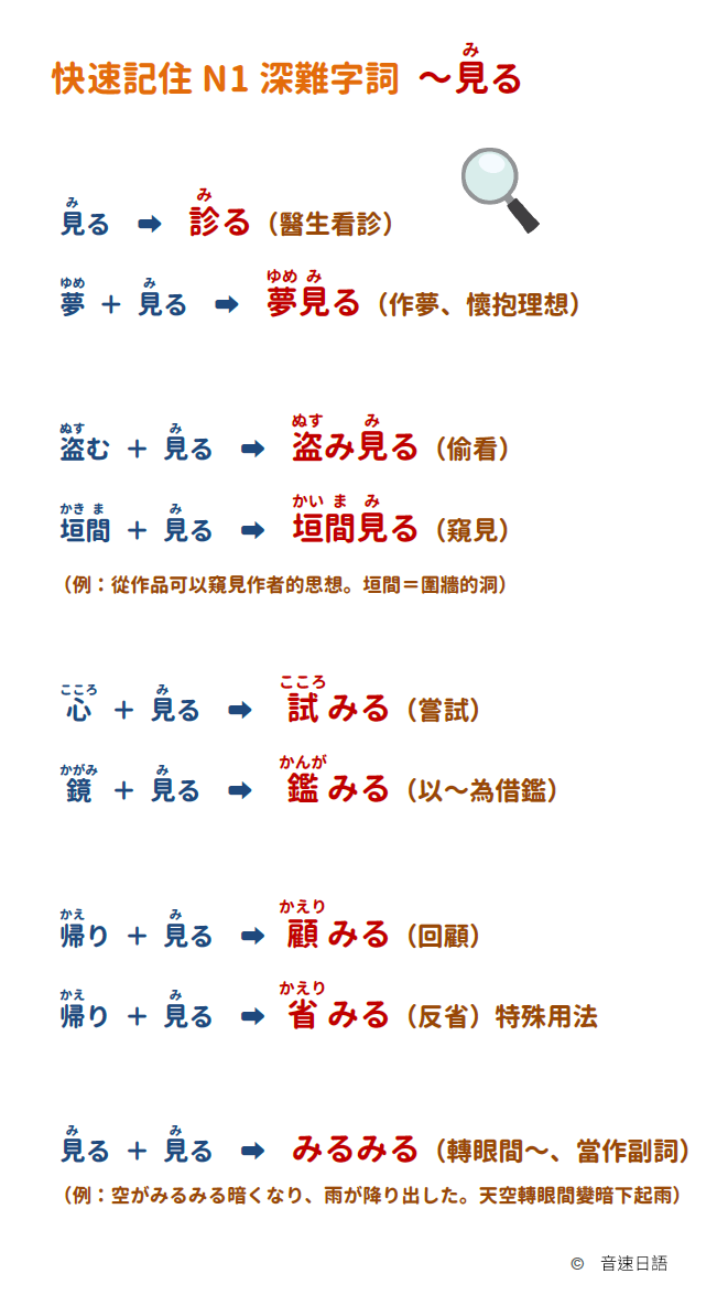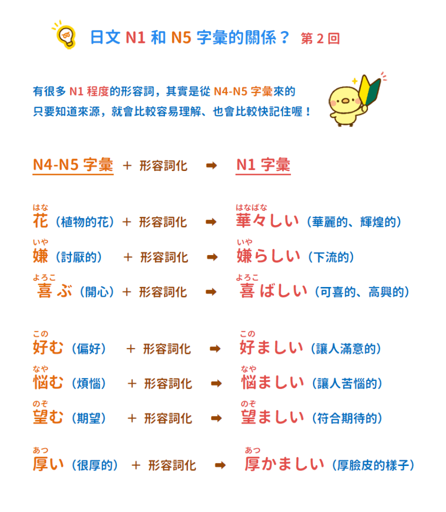 有很多N1程度的單字,其實都是從N4-N5的基礎字彙來的,