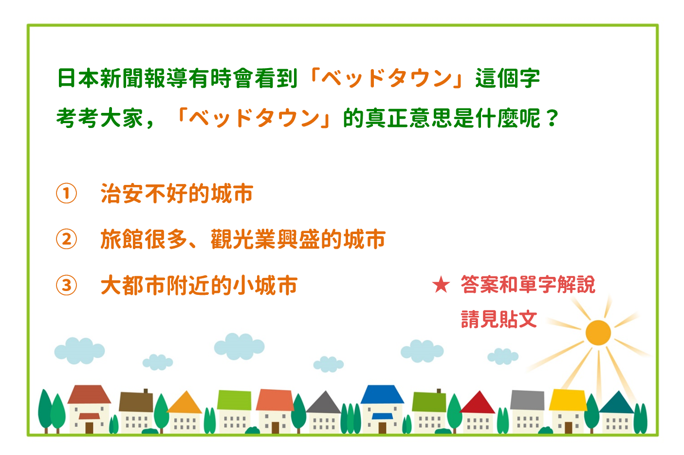 那麼「ベッドタウン」是什麼意思呢?是什麼樣的城市呢?