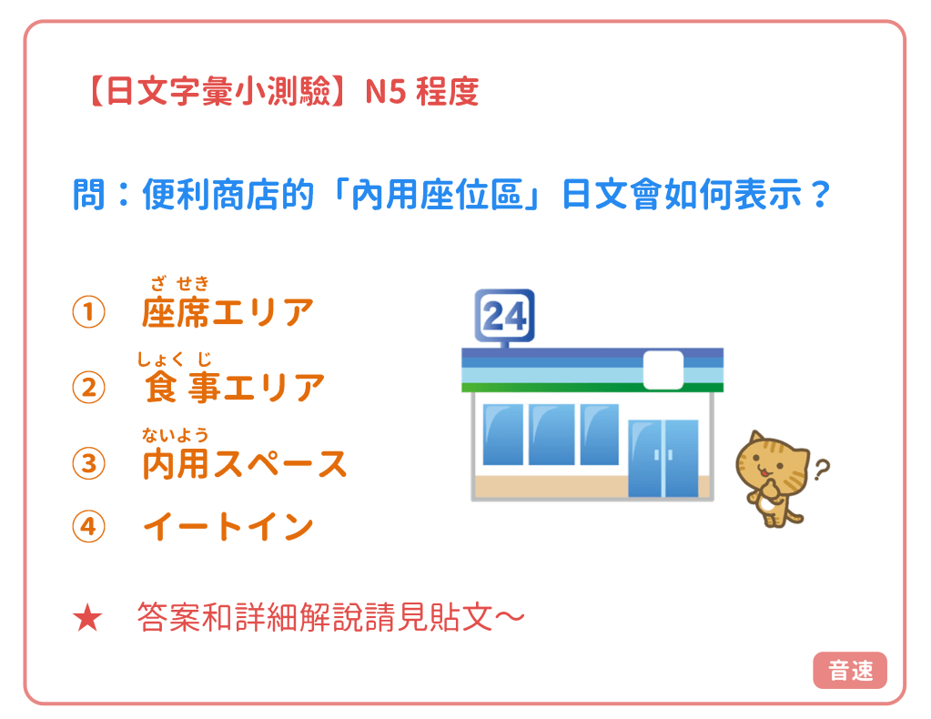 考考大家,便利商店的「內用座位區」,日文會如何表示呢?
