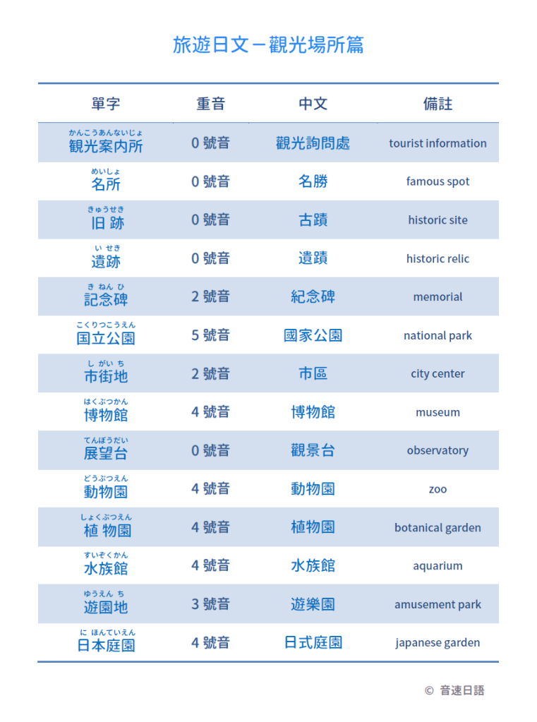 【旅遊日文字彙01】觀光場所篇