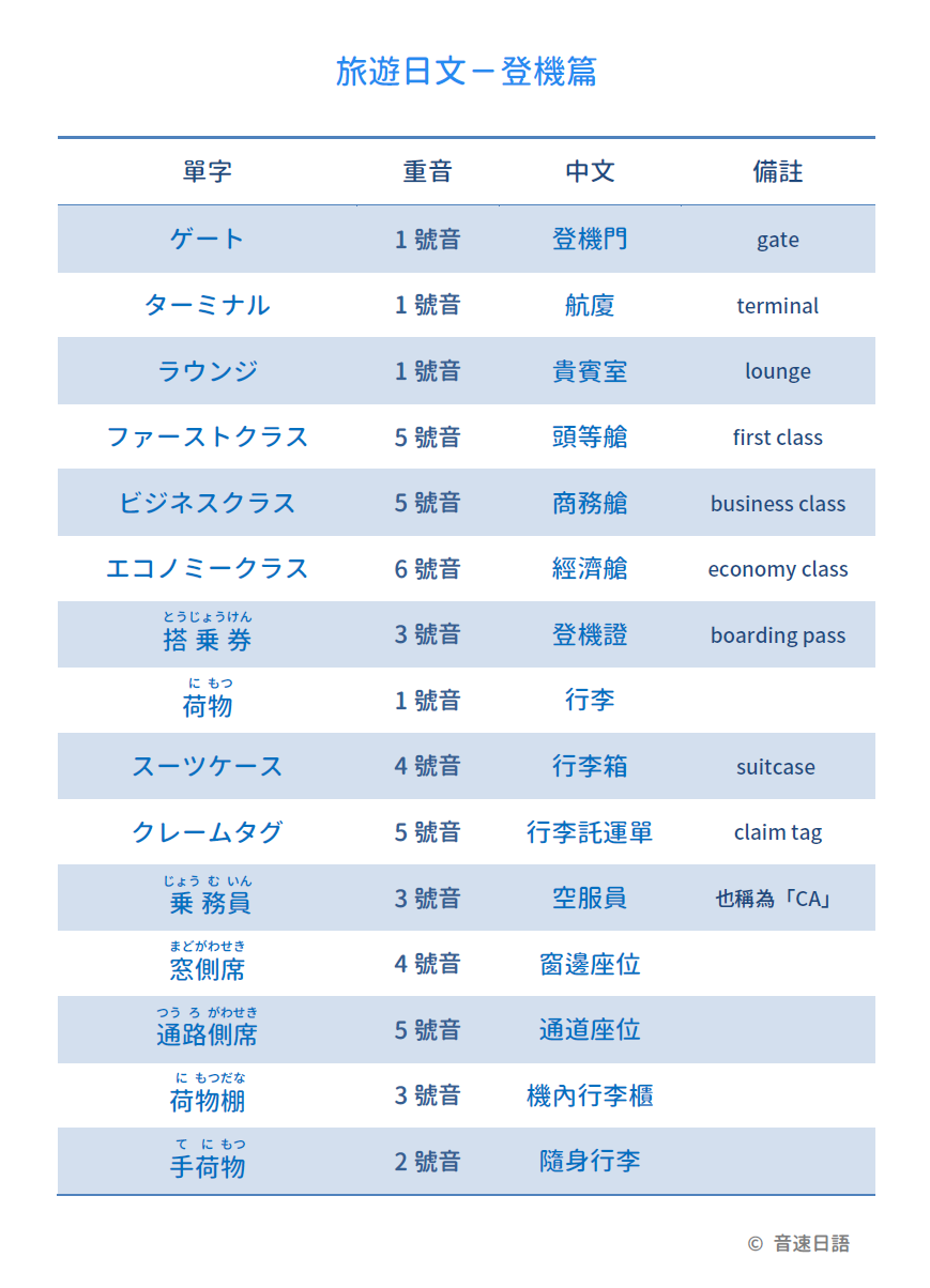 【旅遊日文字彙02】登機篇