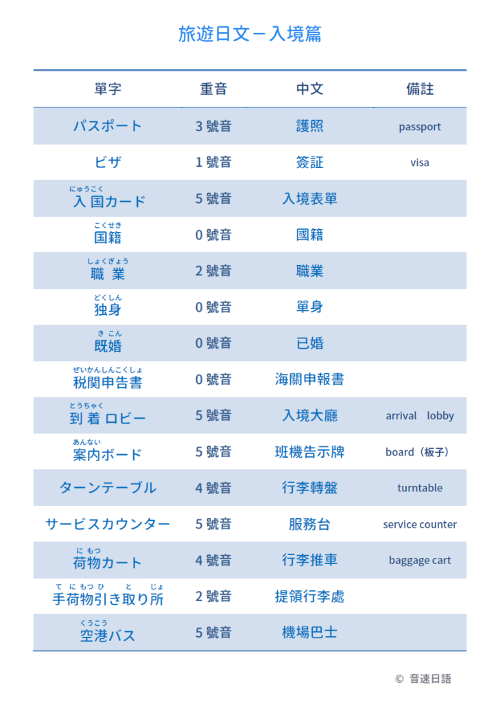 【旅遊日文字彙03】入境篇