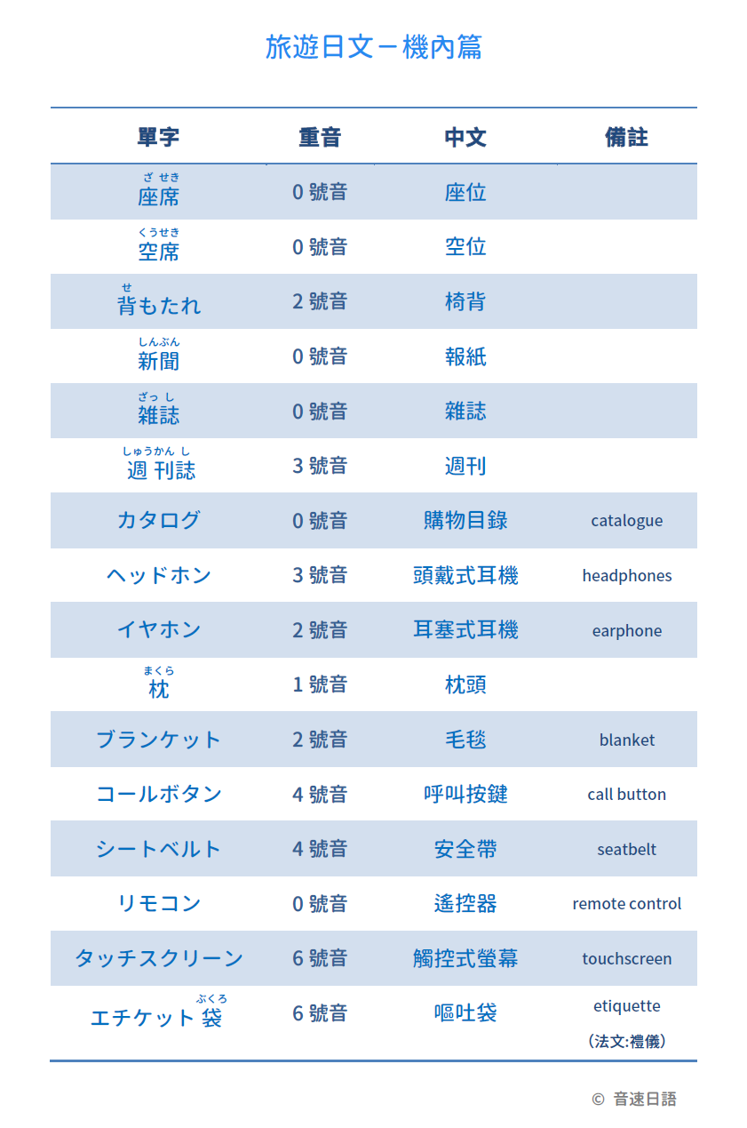 【旅遊日文字彙04】機內篇