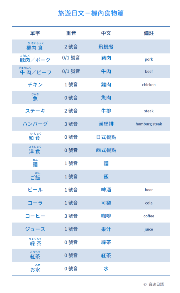 【旅遊日文字彙05】機內食物篇