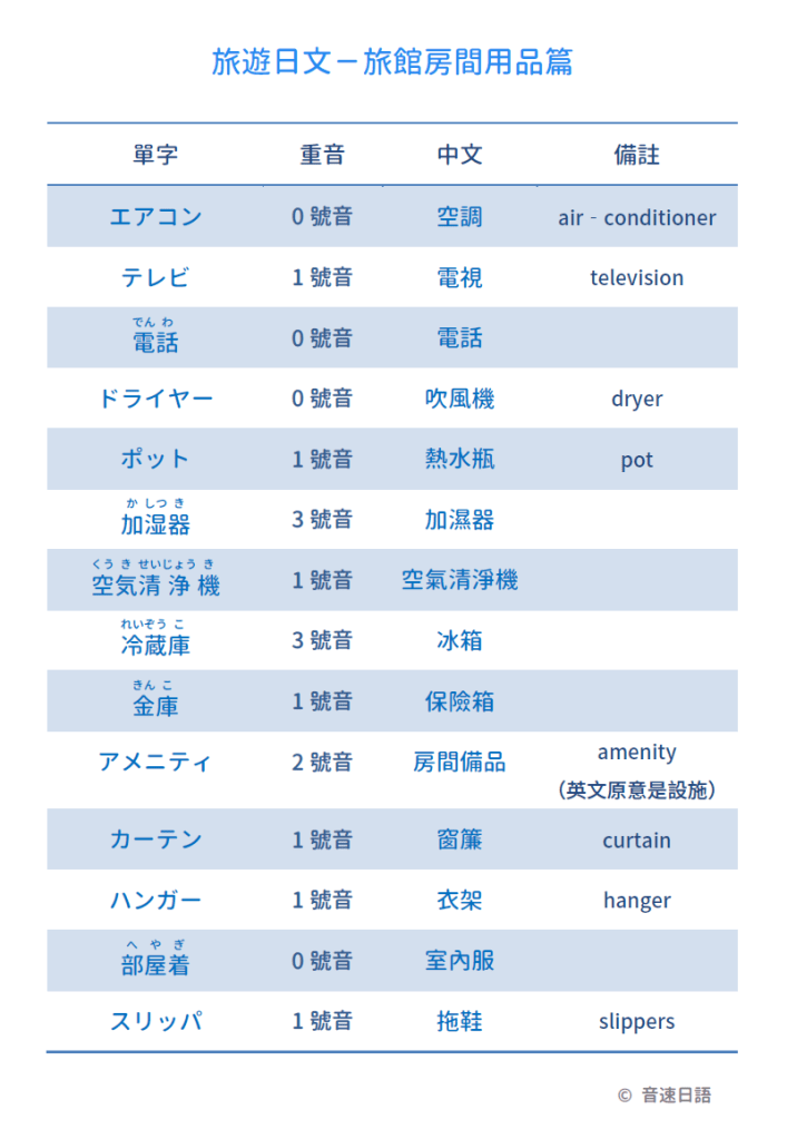 【旅遊日文字彙07】旅館房間用品篇