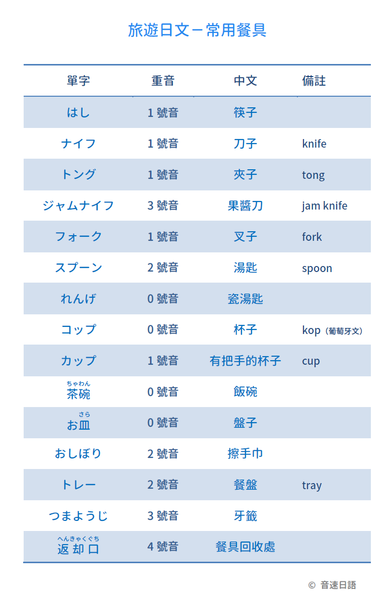 【旅遊日文字彙08】常用餐具篇