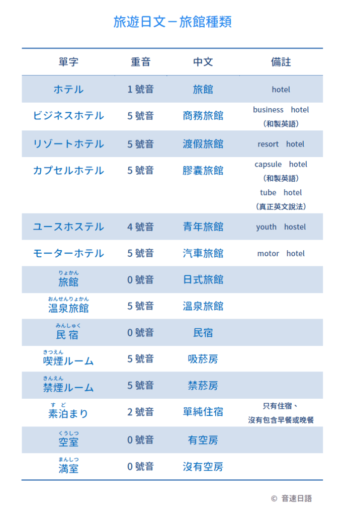 【旅遊日文字彙09】旅館種類