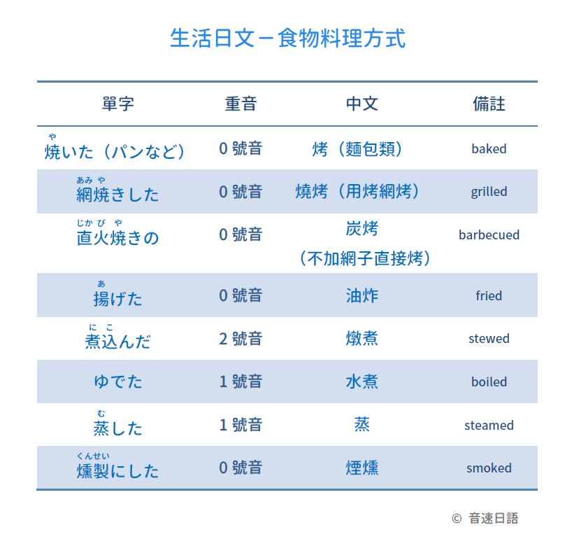 【生活日文字彙01】食物料理方式