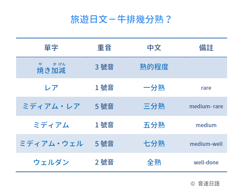 【旅遊日文字彙10】牛排幾分熟