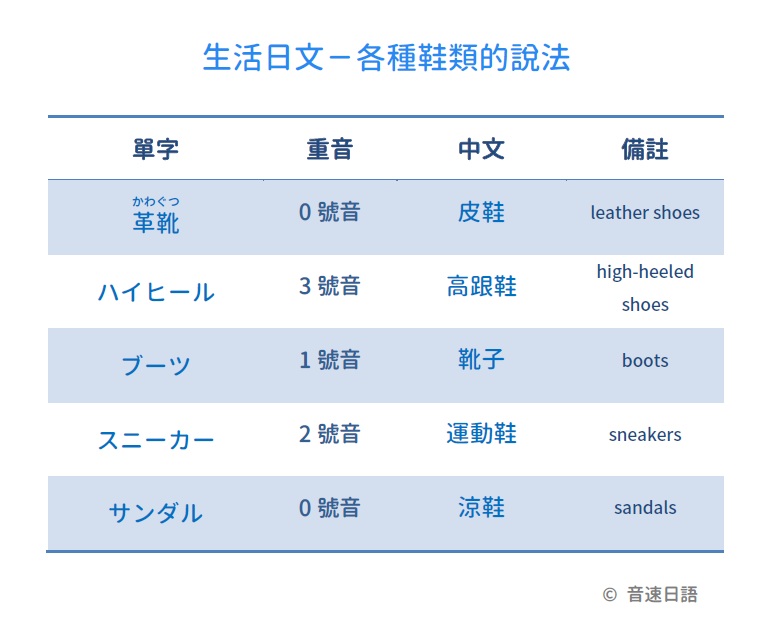 【生活日文字彙02】各種鞋類的說法