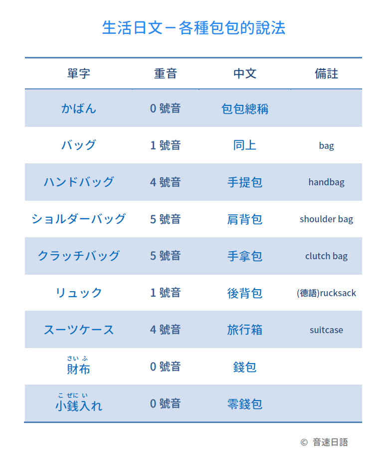 【生活日文字彙03】各種包包的說法